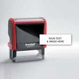 Trodat Customize Your Text Stamp comes up with a Red Body, Built-in Blue Ink Streamline your business transactions with the Trodat Stamp.