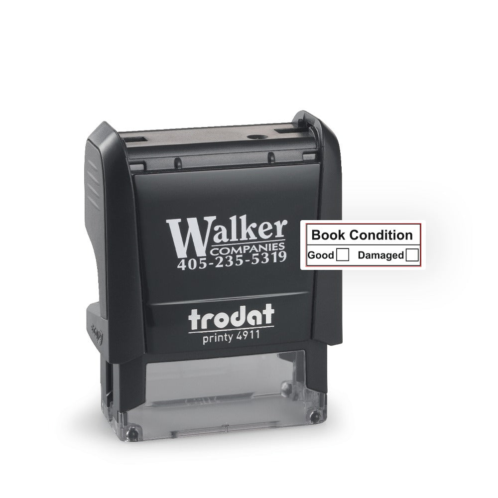 The Trodat Printy 4911 Book Condition Stamp is a compact self-inking stamp designed for schools, libraries, and personal book collections. With options to mark “Good” or “Damaged,” it helps track book conditions quickly and neatly. Its 38x14mm impression makes it ideal for stamping library cards, registers, or directly on books.